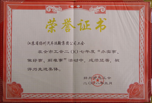 2007年度揚(yáng)州市工會(huì)“辦實(shí)事、做好事、解難事”活動(dòng)先進(jìn)集體