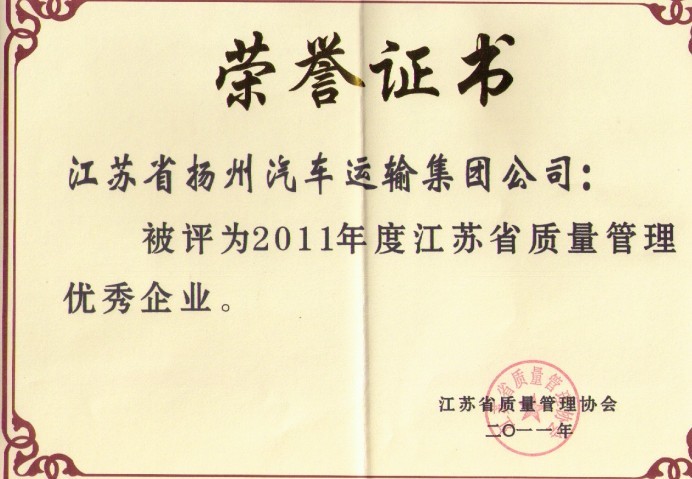 > 集團(tuán)公司榮獲2011年江蘇省質(zhì)量管理優(yōu)秀企業(yè)稱(chēng)號(hào)