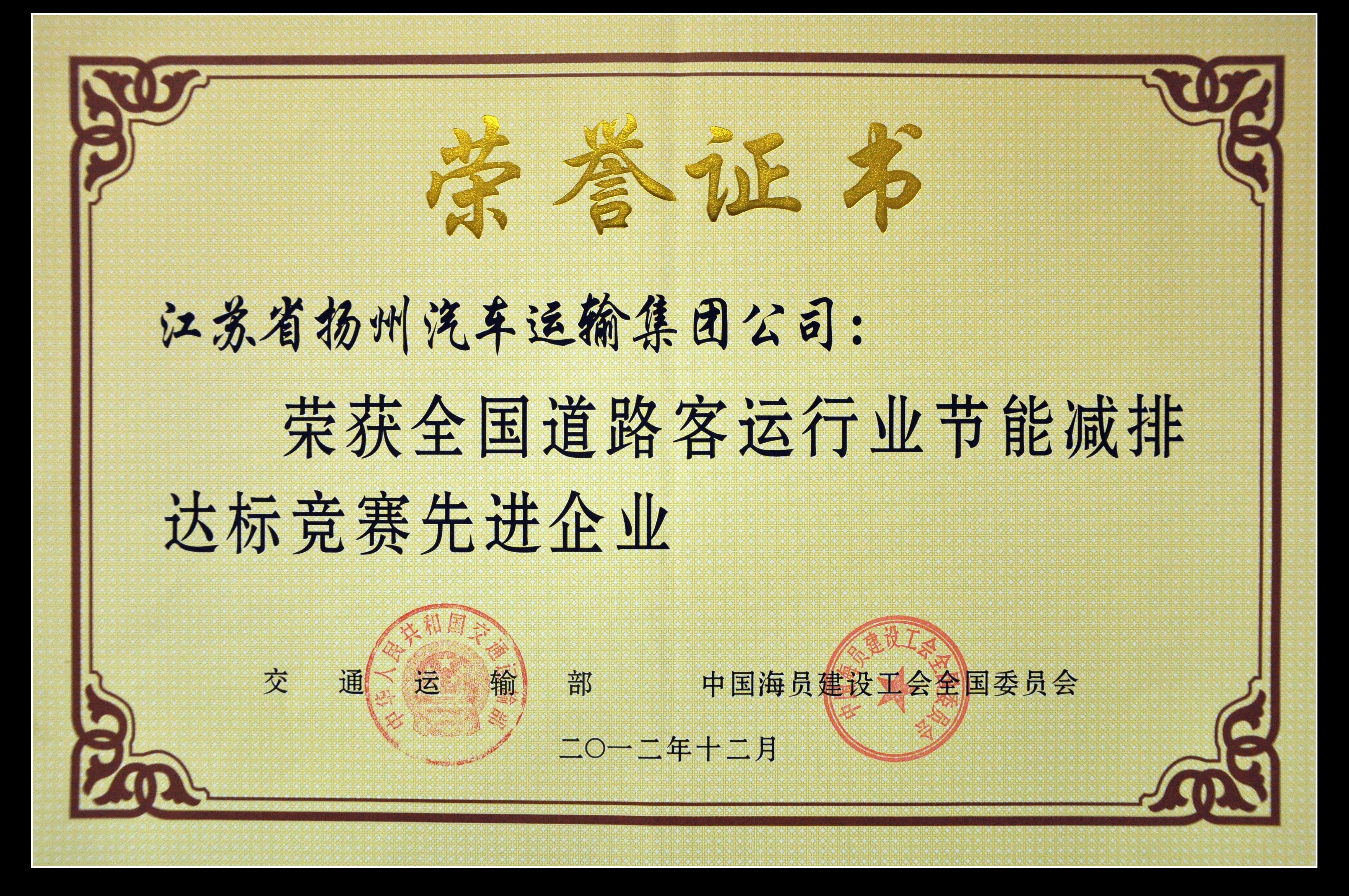 > 我司榮獲“全國道路客運行業(yè)節(jié)能減排達(dá)標(biāo)競賽先進(jìn)企業(yè)”稱號