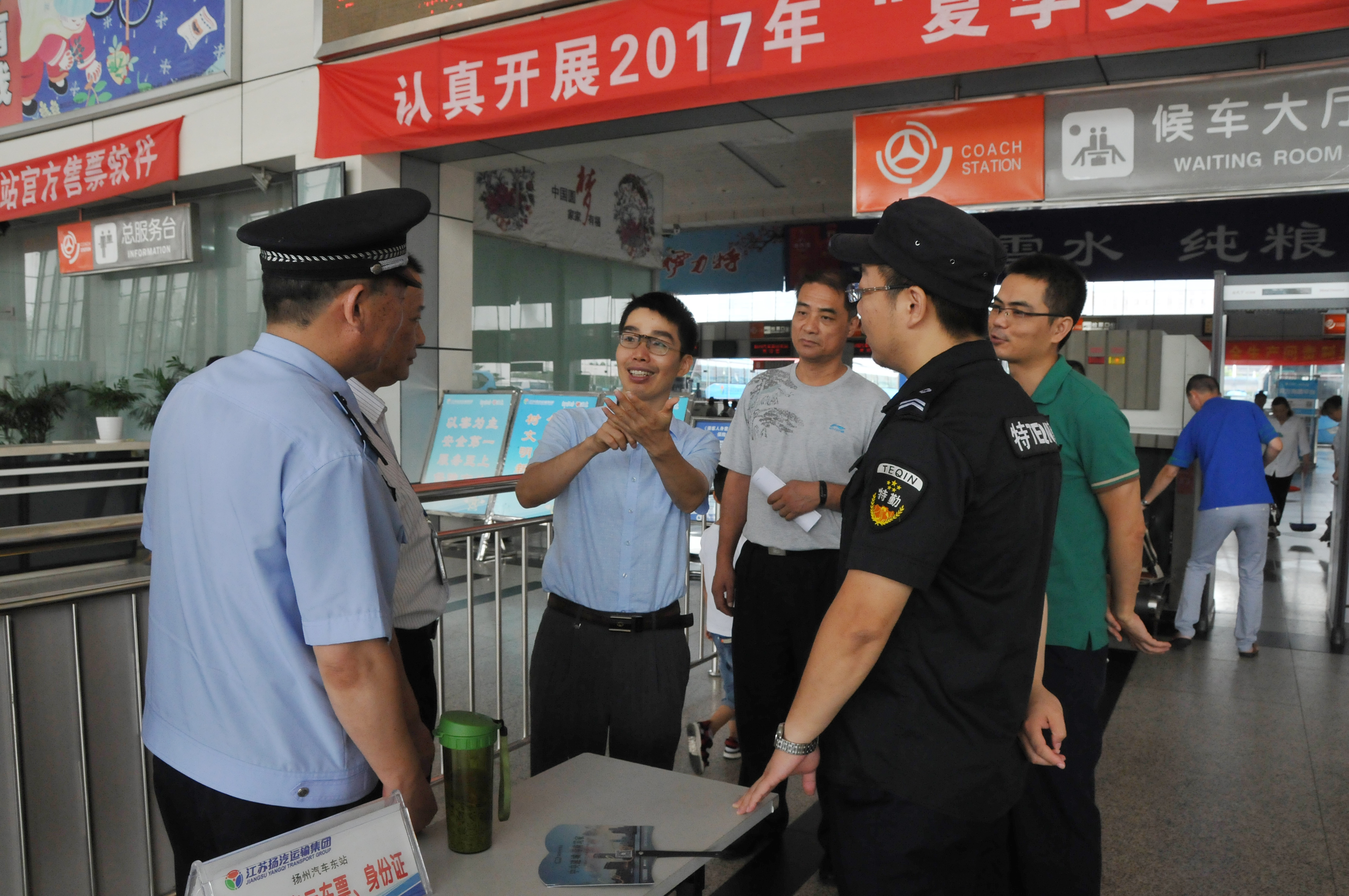 8月3日上午,省運(yùn)管局和省公安廳組成的聯(lián)合檢查組,在省運(yùn)管局副局長李云飛帶領(lǐng)下,對(duì)東站和揚(yáng)州站的安全工作進(jìn)行檢查。揚(yáng)州市運(yùn)管處黨總支書記徐才祥及相關(guān)人員陪同。檢查組深入東、西兩站的生產(chǎn)工作現(xiàn)場(chǎng),重點(diǎn)針對(duì)實(shí)名制購票、三不進(jìn)站六不出站進(jìn)行檢查。檢查組還抽查了多輛班車,對(duì)班車的安全錘、安全帶配置,安全短片播放設(shè)備等逐一檢查,并對(duì)車輛駕駛員進(jìn)行詢問,了解駕駛?cè)藛T對(duì)崗位安全工作流程的掌握情況。