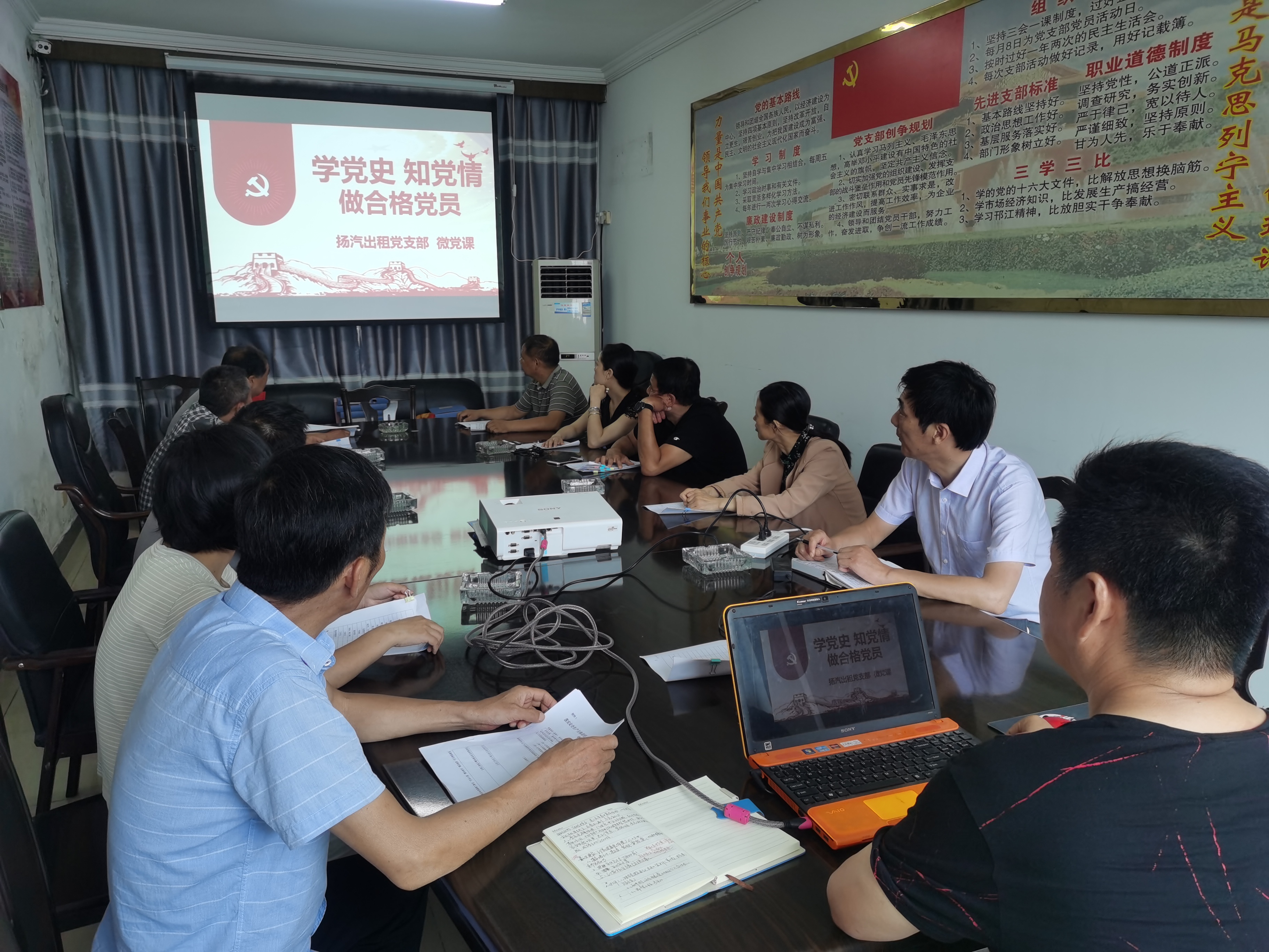 為紀(jì)念建黨99周年,“七一”前夕,揚(yáng)汽出租黨支部組織在崗的13名黨員上了一堂《學(xué)黨史、知黨情,做合格黨員》主題微黨課。