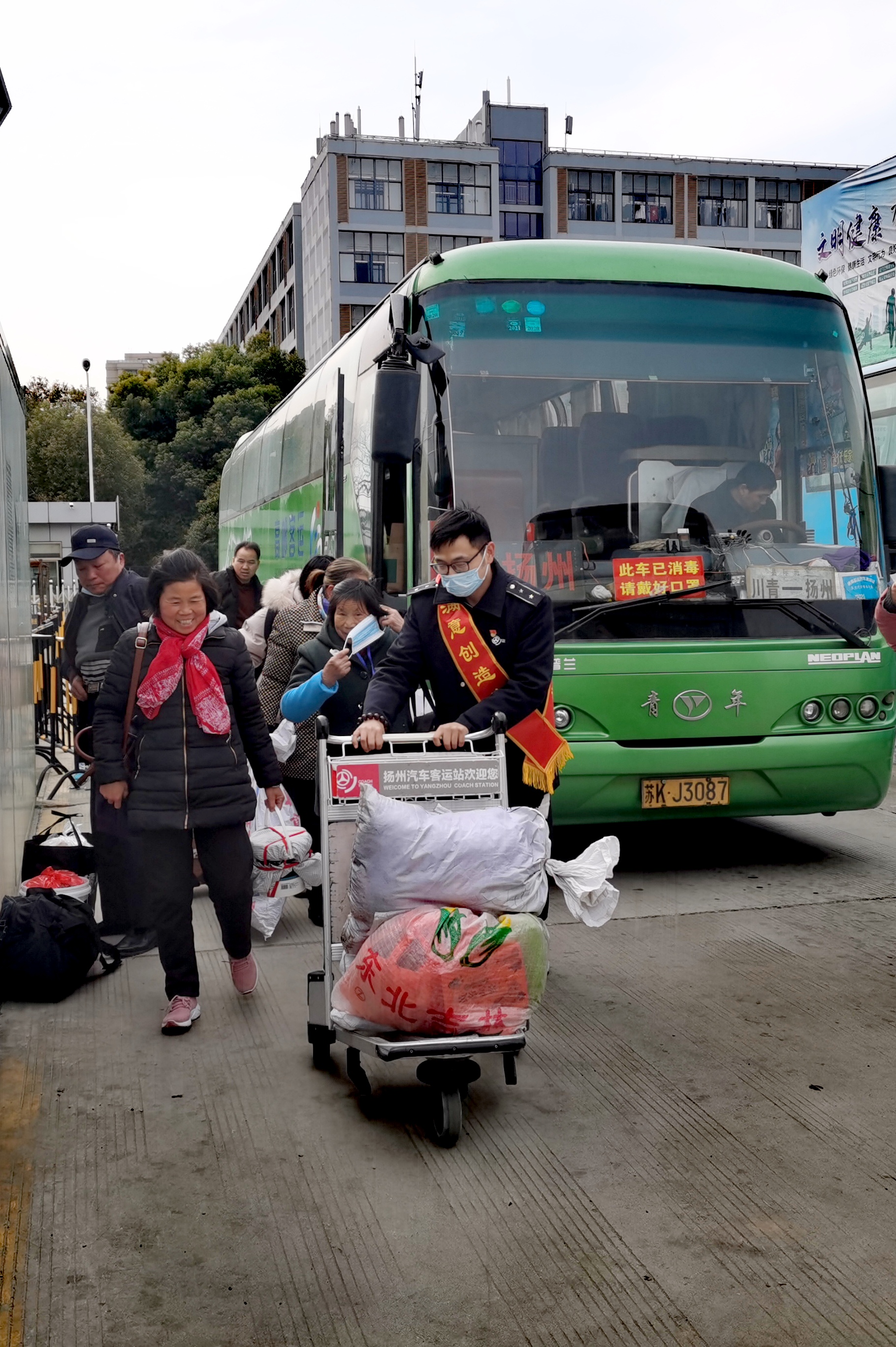 “大媽,您需要熱水嗎?”、“您好,需要我?guī)湍眯欣顔幔?rdquo;、“有什么需要我為您服務的嗎?”……志愿者們推著行李車,拿著熱水瓶,時刻關注著身邊的每一位旅客,在有需要幫助的時候,第一時間出現在旅客身邊,為旅客導乘、攙扶老弱病殘、幫旅客提拿沉重的行李、給需要飲水的旅客遞去熱水,他們用真誠的服務換來了旅客們一聲聲的感謝。