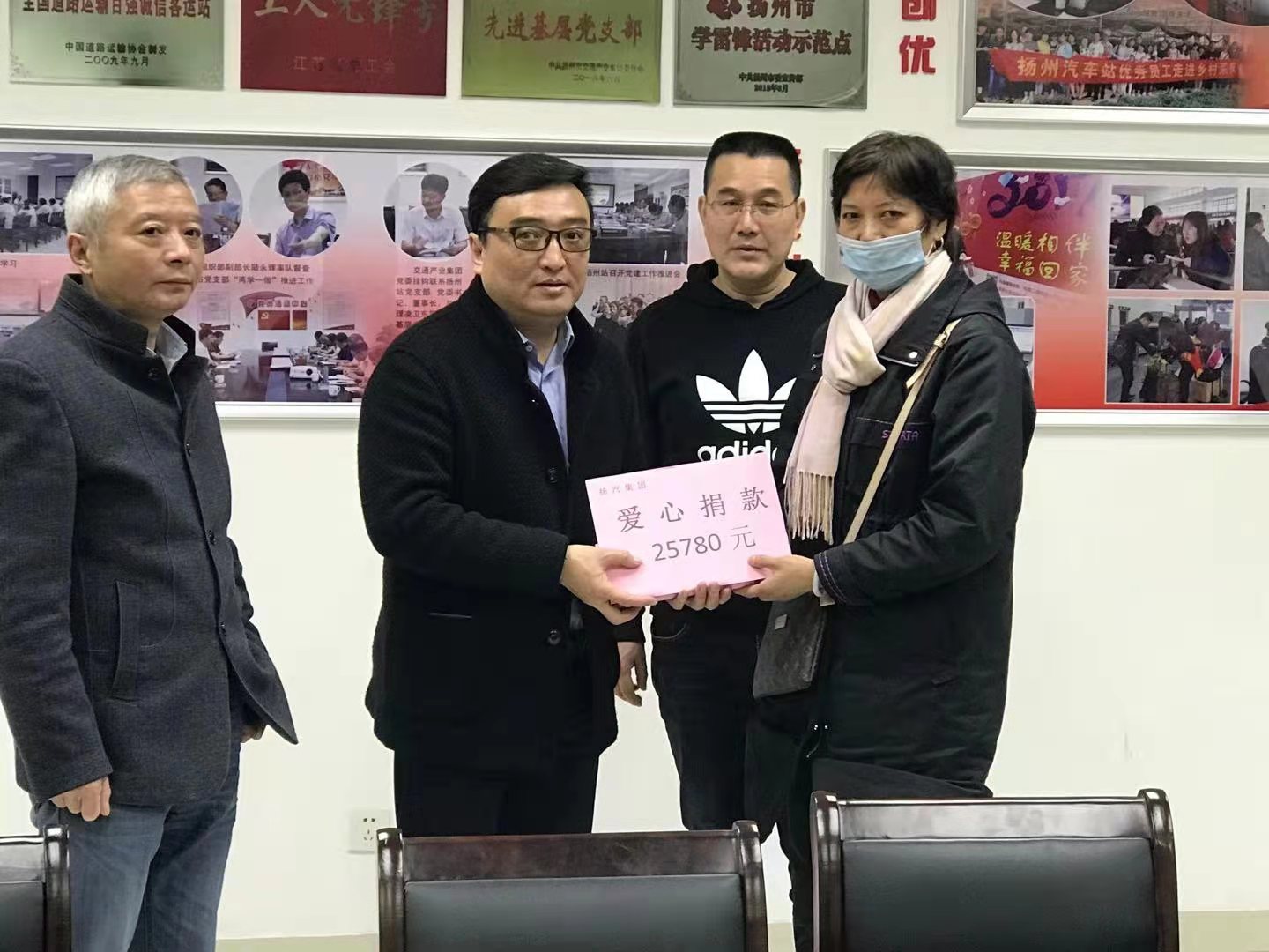 愛心點燃希望,真情傳遞溫暖,今年年初突發(fā)精神病的駕駛員馬安權一直牽動著全司職工的心。因馬安權住在ICU病房無法到院看望,4月6日上午,揚州汽車站工會和車站領導邀請馬安權家屬來到車站,將募捐到的兩萬五千多元愛心捐款交到馬安權家屬手中。
