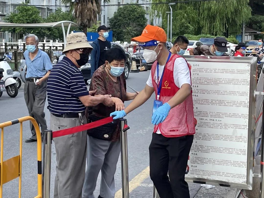 “您好,請(qǐng)按照地上黃線間隔一米有序排隊(duì)!”“請(qǐng)拿好身份證,根據(jù)指示完成信息錄入和核酸樣本采集!”在文匯街道花園社區(qū),前來(lái)進(jìn)行核酸檢測(cè)的居民將原本空曠的中心廣場(chǎng)堵得水泄不通,醫(yī)護(hù)人員們忙得不可開(kāi)交,在交通產(chǎn)業(yè)集團(tuán)抗疫志愿隊(duì)伍的帶領(lǐng)下,來(lái)自揚(yáng)汽集團(tuán)處室的周波、陳思宇、吳思凡和其他志愿者一起,耐心地指揮著大家排隊(duì)遵守秩序。
