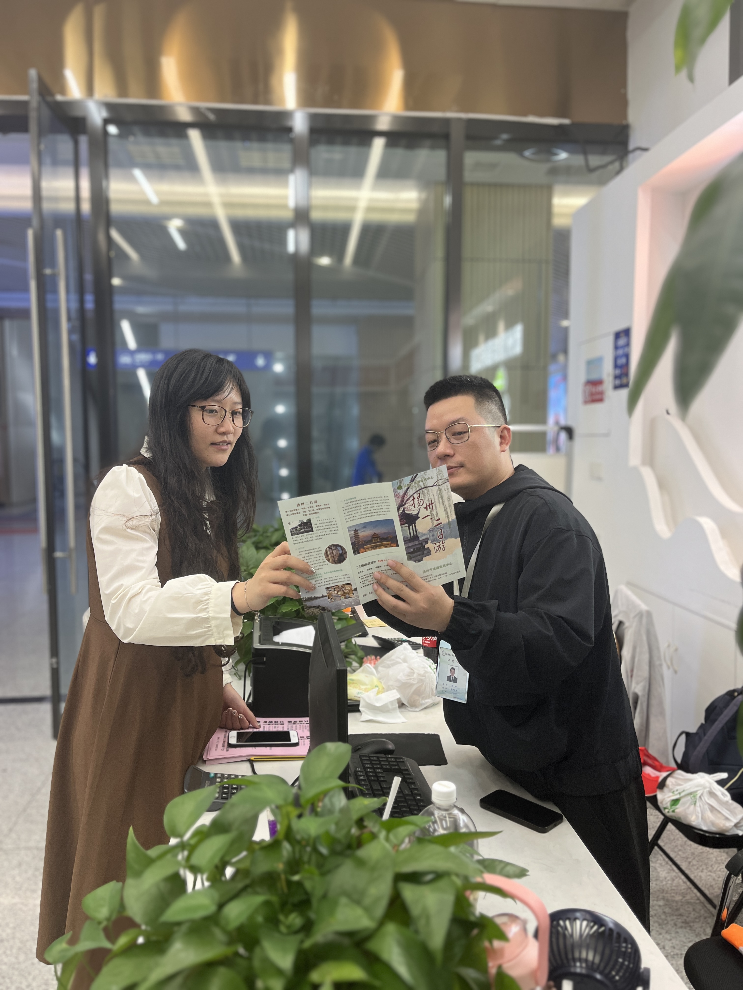 唐正求、王文玉等三人從重慶來到揚州旅游,一下高鐵,便受到集散中心門市工作人員的熱情接待,接待人員耐心地為他們推薦揚州美景、美食等,詳細介紹各個景區(qū)宣傳圖冊。工作人員一邊表達著揚州城對他們的歡迎,一邊遞上熱水請他們就座,把旅游相關的各類注意事項都一一做了講解。他們在結(jié)束揚州的旅游行程后,專程來到高鐵站門市致謝,但是由于把投訴記錄本錯當成了游客意見表,便出現(xiàn)了這樣一封特殊的“致謝信”。